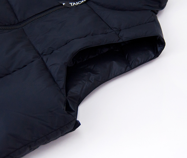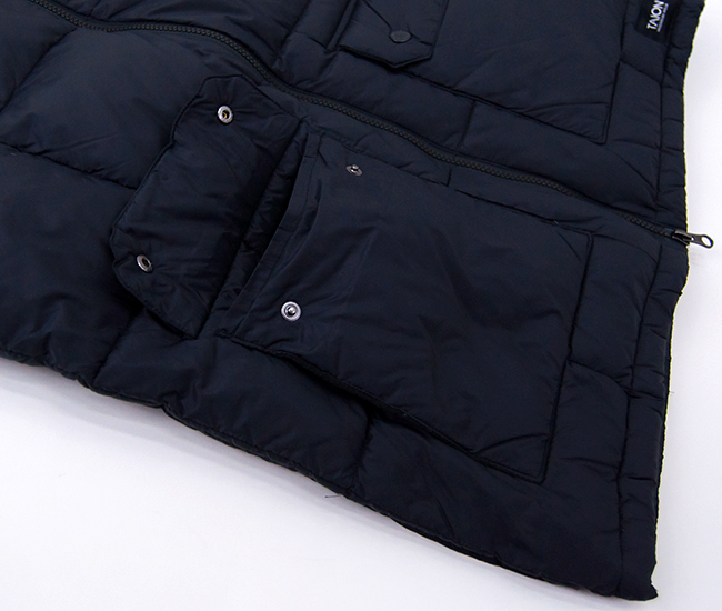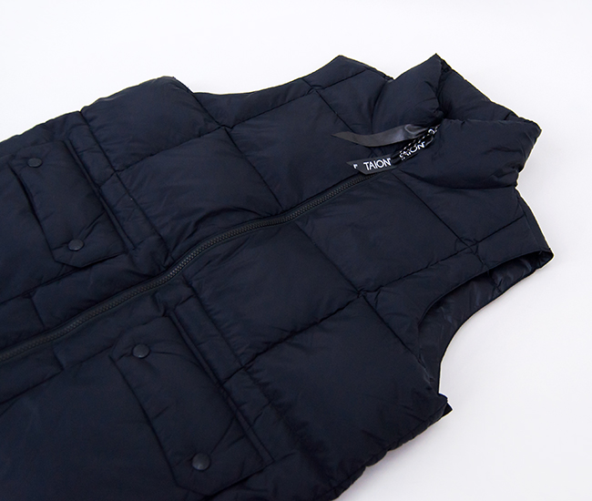 TAIONより、マウンテン パッカブル ボリュームダウンベストが届きました! 「アウターをコンパクトに持ち運ぶ」をコンセプトにしたボリュームダウンベストです。高密度マイクロリップストップ生地を使用しており、羽毛は軽くて反発力に優れた800FPの上質なダウンを使用しています。心地いいボリューム感と軽さが魅力◎ 前たてはYKKファスナーを使用し、ダブルジップ仕様となっているので下からスリットを設けたり、シルエットの変化も楽しめます。左右腰には、2WAY仕様のハンドウォーマーポケット付き。収納袋が付いており、コンパクトに持ち運びが可能で外出や旅行には最適です。機能性・デザイン性に優れているので、タウンユースからアウトドアまで幅広く活躍するアイテムです。