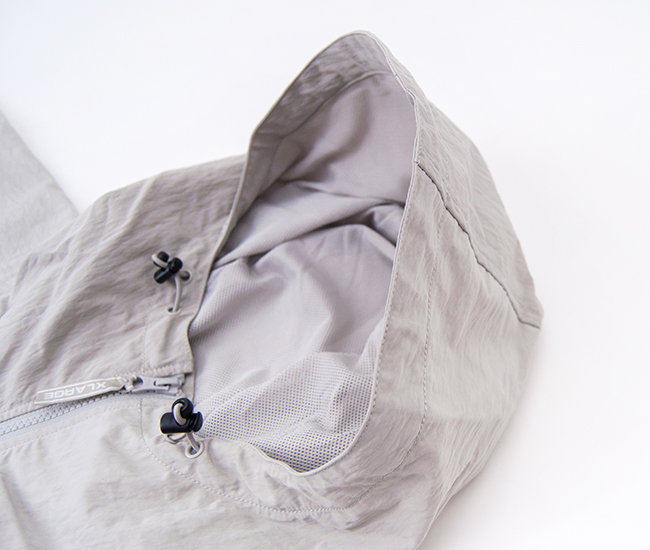 XLARGEより、ラグラン フーデッドジャケットが届きました! スポーティかつトラッドなスタイルのフードジャケットです。柔らかな風合いで丈夫なコットンナイロン素材使用しており、内側にはメッシュを採用しています。背中にはベンチレーションを備えており、熱や蒸れを逃がすため快適な着心地を保ちます。 両サイドには便利なポケット付き。ジップを上げるとスタンドカラーになって首元をカバーしてくれて、フードにはドローコードがついているのでサイズ調整も可能です。タウンユースだけでなく、スポーツシーンからアウトドアまで様々なシーンで活躍するアイテムです。