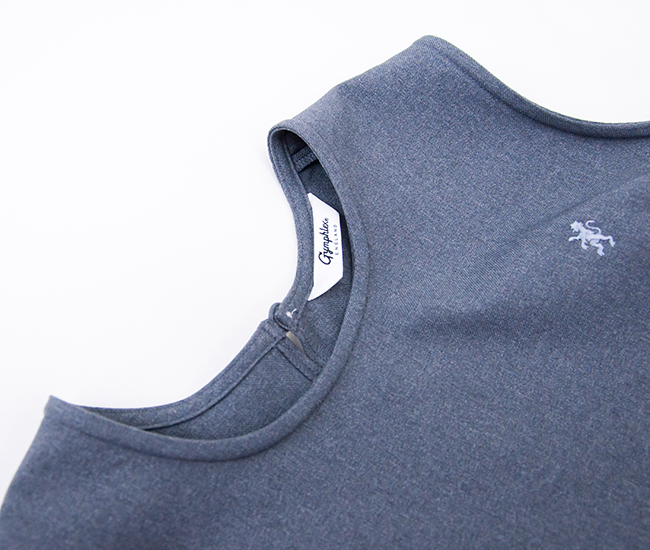 Gymphlexより、ポリフランネル フレアチュニックが届きました! ボリューム感のあるノースリーブのチュニックシャツです。ウールライクなポリエステル素材を使用しており、糸自体が起毛したような膨らみでソフトな風合いとなっています。裾に向けてふんわり広がるAラインシルエットで女性らしい佇まいに◎ 胸にグリフィン刺繍を施しており、アクセントになっています。背面に1点留めのループボタンを配したシンプルなディテール。ヒップやお腹まわりを自然にカバーしてくれる丈感も嬉しいポイントです。レギンスやパンツと相性抜群で、大人っぽくもカジュアルにも着こなしていただけるアイテムです。