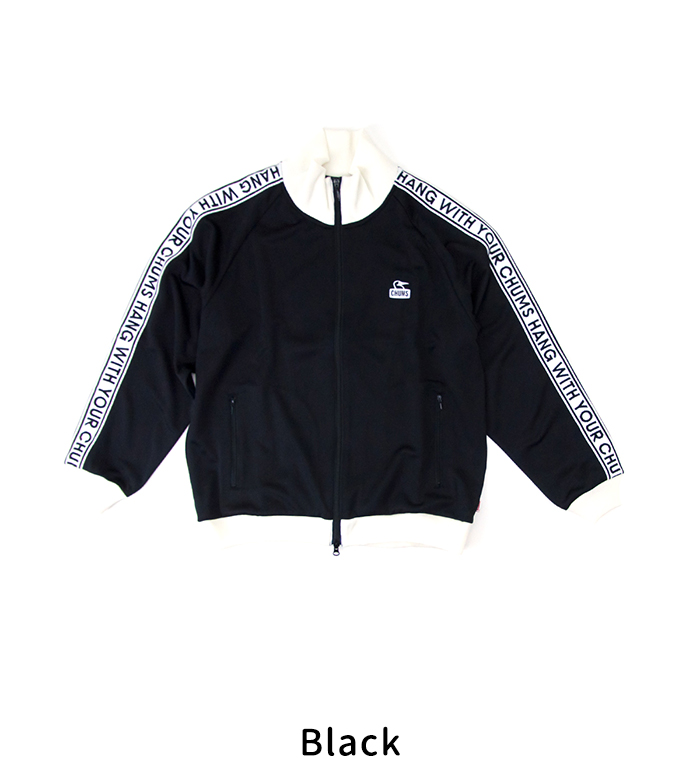 CHUMSより、カーンズトラックジャケットが届きました! 80〜90年代のスポーツMIXスタイルにフォーカスし、CHUMSらしく仕上げたトラックジャケットです。耐久性と速乾性に優れたポリエステルのジャージ素材を使用しており、程よく光沢感があり、滑らかな肌触りが魅力。CHUMSの合言葉「HANG WITH YOUR CHUMS!」を綴った両袖のテープデザインがアクセントに◎ フロントのファスナーはダブルジップ仕様となっており、アレンジを楽しめます。裾と袖口はリブ仕様で配色になっており、レトロなカラーリングに仕上がっています。両サイドにはファスナーポケットが付いており、小物も安心して収納できます。デイリーユースからスポーツシーンまで幅広く活躍するアイテムです。