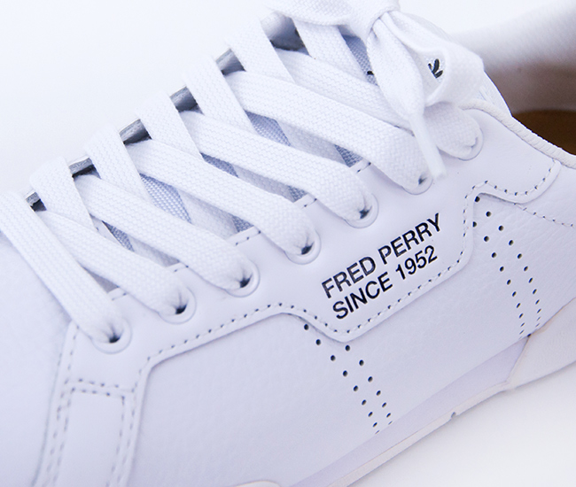 FRED PERRYより、レザーボールド ブランディング シューズが届きました! エンボスレザーを使用したテニスシューズです。落ち着いた配色で、飽きが来なく、大人向けのレザースニーカーになっています。足元が引き立つカラーリング。素材はナチュラルな天然皮革を使用しています。サイドには「FRED PERRY SINCE 1952」のブランディングが施されています。 厚みのあるラバーソールに施したカットアウトディテールが特徴です。足に優しくフィットしてしっかりサポートするかかと周りも魅力。FRED PERRYオリジナルのアウトソールは弾力性の高いラバーで、グリップ性に優れています。カジュアルなスタイルにはもちろん、スラックなどと合わせるのもお勧めです。