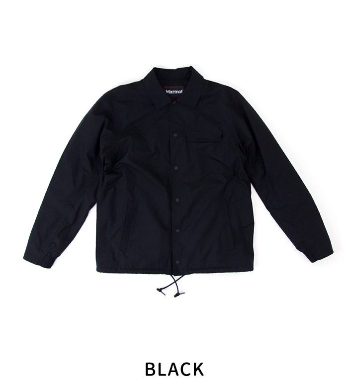 Marmotより、ガニソンコーチジャケットが届きました! 軽量のナイロン素材に耐久性や柔軟性も兼ね備え、独自の撥水加工を施した素材を使用したコーチジャケットです。裏地には、多機能繊維を使用した中綿と裏地を一体化したトリコット生地を使用しており、空気を多く含み、軽量ながら高い保温性を実現しています。 左胸と両サイドには便利なポケット付き。フロントはスナップボタンで、着脱もスムーズです。袖口は半分ゴム仕様となっているので、冷気の侵入も防げます。裾にはコードが付いており、お好みのフィット感に調節が可能となっており、シルエットの変化も楽しめます。シンプルなデザインで、アウトドアやレジャー、タウンユースでも活躍するアイテムです。
