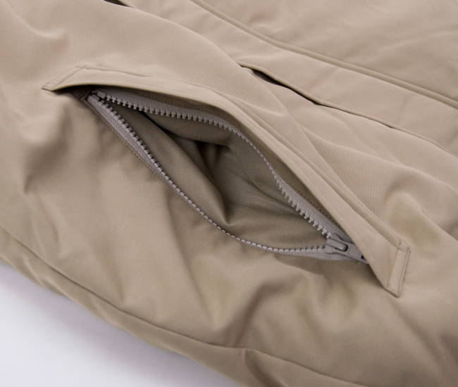 DANTONより、アーミー ダウンジャケットが届きました! ミリタリーウェアをデザインベースにしたフード付きダウンジャケットです。ハリのあるポリエステルタッサーを採用しており、光沢を抑えたマットな質感が魅力。堅牢度が高く色落ちしにくい素材で、仕上げに撥水加工を施しているため小雨程度なら安心です。 フロントはドットボタン付きフラップが配されたダブルファスナー仕様で抜群の防寒性。ファスナー付きのサイドポケットに加え内ポケットを配備、背面には大きなゲームポケットが配されており収納力は抜群。袖口に面ファスナー、裾とフードにゴムスピンドルを配備しており、風の冷たい日には調整でき、シルエットの変化も楽しめます。ラグランスリーブでボリューム感のあるシルエットで、タウンユースはもちろんアウトドアシーンでも活躍してくれるアイテムです。