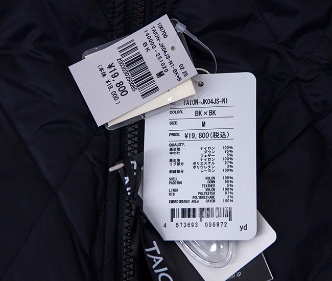 TAION タイオン ユニセックス ジャパンスペシャル トラック ダウンジャケット[TAION-JK13JS-J1]【2025FW】