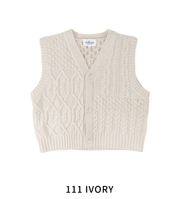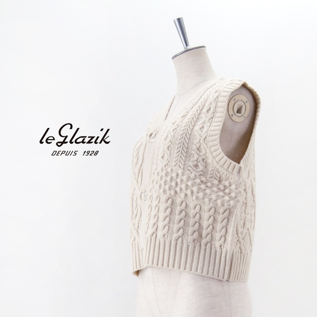 【SOLDOUT】Le glazik ル グラジック レディース Vネック ケーブルニットベスト[LG-D0110NCB]【2024FW】