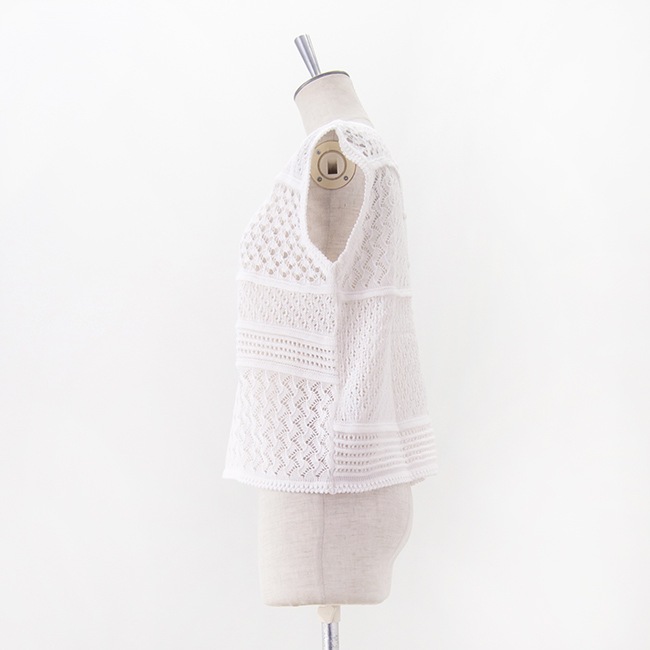 TOMORROWLAND MACPHEEより、レーシーギマ スリーブレスプルオーバーが届きました! ![]() 女性らしい華やかで繊細なプルオーバーです。 ![]() クロシェを表現した柄をパッチワークのようにデザインしました。 ![]() コンパクトなシルエットときゅっと詰まったネックラインでクリーンなバランス。 ![]() ![]() フロンタブル仕様でボタンを前に持ってくるとベスト感覚でも着用して頂けます。 ![]() ノースリーブやワンピースにさらっとレイヤードすれば抜け感と奥行きが出ます。 ![]() 透け感を活かしてカラーのインナーを合わせて着こなすのもおすすめです。 ![]() ヘルシーな透け感とナチュラルな風合いが柔らかな雰囲気を演出。 ![]() 華やかな編み模様が印象的です。 ![]() ギマ加工を施したコットン糸で編みあげました。シャリ感のある風合いが特徴です。 ![]() ![]() |